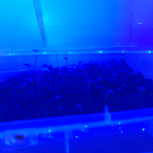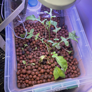 I attached a set of LED lights onto a cardboard cut-out and taped it onto the grow bed. I am experimenting with different light types to find out the optimum light for growing plants. See my "Research" section for more information.